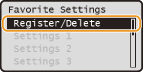 <إعدادات المفضلة> <Edit/Delete> حدد الإعداد <Delete> <Yes> .يتم حفظ الإعدادات المسجلة حتى عندما يتم إيقاف تشغيل الجهاز.