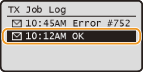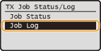 في حالة تعيين <Display Job Log> على <Off>فلن تتمكن من التحقق من سجلات المستندات المرسلة.