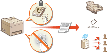 يمكن منع بعض حالات تسرب المعلومات من خلال تقييد وجهات الفاكس والبريد الإلكتروني المتوفرة للوجهات المسجلة في دفتر العناوين أو خوادم LDAP، أو من خلال تعيين رمز PIN لدفتر العناوين حتى لا يتمكن المستخدمون غير المرخص لهم من إضافة إدخالات بدفتر العناوين أو تحريرها. يمكنك أيضًا تجنب إرسال المستندات إلى مستلمين غير مخصصين إذا تم تعيين الجهاز على طلب إدخال رقم الفاكس مرتين للتأكيد.