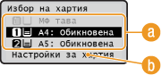 Използвайте, за да изберете хартията, върху която желаете да отпечатвате.