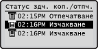 Показва текущия статус на избрания елемент. Екранът <Сттс.здч.копр./отпеч.> е показан по-долу като пример.