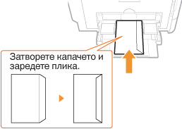 Уверете се, че сте изгладили всички огънати пликове, преди да ги заредите. Също така обърнете внимание на ориентацията на пликовете и коя страна е ориентирана нагоре. Зареждайте пликове в многофункционалната тава. Не можете да ги зареждате в касетата за хартия.