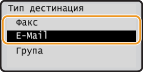 Изберете <Факс> или <E-Mail> и натиснете