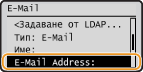 Изберете <Факс>, когато запаметявате номер на факс, или изберете <E-Mail>, когато запаметявате имейл адрес.