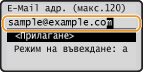 Съгласно запаметеното в LDAP сървъра съдържание, потребителското име и номерът на факс/имейл адресът на зададената дестинация (запаметена в LDAP сървъра) ще бъдат въведени автоматично.
