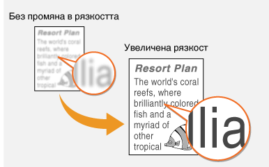 Можете да настроите рязкостта на изображението, преди да го изпратите. Увеличете рязкостта, за да направите текста и линиите по-резки, или намалете рязкостта, за да подобрите изгледа на снимки от списание.