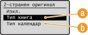 (2-странно/Копиране на лична карта), вместо да избирате <2-странен оригинал>, както при описаната по-долу процедура. |