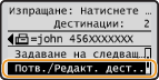 .Ако сте задали група от дестинации на стъпка 2, на екрана се извежда <Брой дестинации>. Избирането на този елемент и натискането на