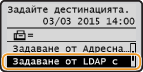 Ако във вашия офис е инсталиран LDAP сървър, можете да използвате дестинациите, запаметени в сървъра. За да зададете дестинации, влезте в LDAP сървъра чрез машината и потърсете дестинация.
