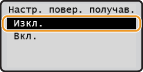 . Необходимо е също така за <Отч. резулт.от получ.> да зададете настройка <Вкл.>. Отчет за получаване (Само за imageRUNNER 1435iF)