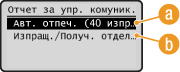 Изберете <Вкл.>, за да отпечатвате отчет на всеки 40 изпращания, или <Изкл.>, ако не желаете да отпечатвате отчета автоматично.