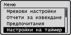 Всички настройки на таймера са поместени с кратки описания в списъка. Настройките по подразбиране са отбелязани с кръстче (