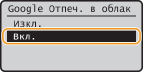 Ако искате да забраните функцията за Google Отпечатване в облак, изберете <Изкл.>.