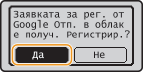 Можете също да регистрирате машината от мобилно устройство или Google Chrome*. Дисплеят на машината показва следния екран за потвърждение преди завършване на регистрацията. Натиснете <Да>, за да завършите регистрацията.