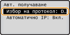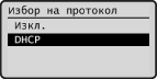 Ако не желаете да използвате DHCP сървър за присъединяване на IP адрес Изберете <Изкл.>. Когато изберете <DHCP>, докато DHCP услугата не е достъпна, машината ще провери дали са достъпни услуги в мрежата и ще извърши ненужна комуникация. |