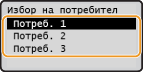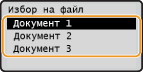 Ако защитени документи на двама или повече потребители се съхраняват в паметта, първо се извежда екранът <Избор на потребител>, преди екрана <Избор на файл>. Използвайте