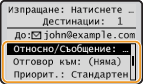 . Използвайте адресната книга или LDAP сървър за дестинациите <До>. За да укажете дестинации за <Cc> и <Bcc>, трябва да използвате адресната книга.