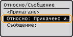 Изберете <Относно/Съобщение> и натиснете