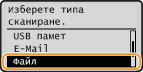Достъпни дестинации за файлови сървъри са само запаметените в адресната книга. Ако не са запаметени дестинации, запаметете дестинации в адресната книга, преди да сканирате към файлов сървър.