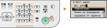 Можете да използвате бутоните с цифри само когато задавате първата дестинация. Ако желаете да зададете допълнителни дестинации, използвайте адресната книга или LDAP сървър. За да зададете дестинации като Cc или Bcc адреси, е необходимо да използвате адресната книга.