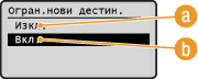 За дестинации за файлови сървъри, можете да настроите машината да забранява на потребителите да добавят нови записи в адресната книга или да редактират съществуващите записи в адресната книга. При изпращане на документи към файлови сървъри, не можете да въвеждате дестинации чрез бутоните с цифри или да търсите дестинации от LDAP сървърите, независимо от тази настройка.