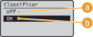 Si prepareu diverses còpies de documents que contenen diverses pàgines, establiu <Classificar> a <On> per classificar les còpies seguint l'ordre seqüencial de les pàgines. Aquesta funció és molt útil quan s'han de preparar documents per lliurar-los durant una reunió o una presentació.