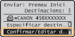 Seleccioneu <Confirmar/Editar destinació> i premeu