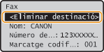 Si voleu eliminar destinacions de manera ràpida i fàcil sense visualitzar una llista de destinacions.Abans de seleccionar <Confirmar/Editar destinació> al pas 1, podeu prémer
