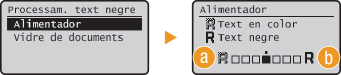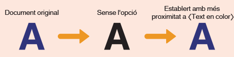 Quan llegiu documents en color, podeu ajustar el color del text negre o semblant al negre per tal que s'assembli molt més a l'original o ajustar la claredat del text en negre perquè sigui més fàcil de llegir. Podeu seleccionar opcions diferents per a l'alimentador i el vidre de documents.