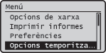 Es mostra una llista de totes les opcions del temporitzador amb descripcions breus. Les opcions predeterminades estan marcades amb una daga (