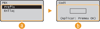 Introduïu el número d'accés de la línia externa si seleccioneu <Prefix>