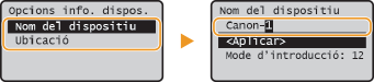 Seleccioneu <Nom del dispositiu> o <Ubicació>