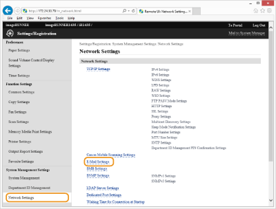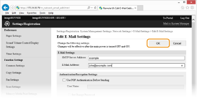 Utilitzeu Remote UI (IU remot) per configurar opcions de correu electrònic, com ara la informació del servidor SMTP i el xifratge TLS. Per a més informació sobre les opcions necessàries, poseu-vos en contacte amb el vostre administrador de xarxa o el vostre proveïdor de serveis d'Internet.