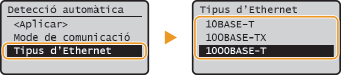 Seleccioneu <Tipus d'Ethernet>    seleccioneu <10BASE-T> , <100BASE-TX> o <1000BASE-T>  .