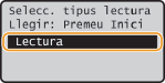 Seleccioneu <Lectura> i premeu