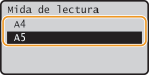 Si esteu utilitzant l'imageRUNNER 1435i i es mostra la pantalla per especificar les opcions de lectura, podeu especificar la mida de lectura prement