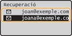 Podeu seleccionar una destinació entre les tres destinacions més utilitzades anteriorment. Quan especifiqueu una destinació utilitzada anteriorment, l'equip també estableix les mateixes opcions de lectura, com ara la densitat, utilitzades l'última vegada que vau enviar documents a aquella destinació.