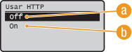 HTTP s'utilitza per a les comunicacions per la xarxa, com ara quan s'accedeix a l'equip mitjançant Remote UI (IU remot). Si utilitzeu una connexió USB o no utilitzeu HTTP, podeu desactivar HTTP per bloquejar instruccions de tercers malintencionades pel port HTTP no utilitzat.