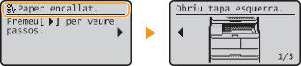 per veure solucions senzilles a la pantalla. Si els procediments que es mostren resulten difícils d'entendre, vegeu les seccions següents per treure els papers encallats. Llegiu detingudament les precaucions de la secció Manteniment i inspeccions abans d'eliminar encallaments de paper.