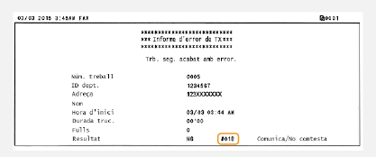 Quan cancel·leu una operació, apareix aquest codi d'error, però no és cap anomalia. Imprimiu, envieu o rebeu documents un altre cop si cal.