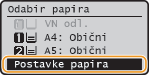 Ako se prikaže zaslon <Odabir papira> ilustriran dolje, upotrijebite
