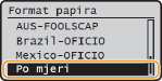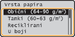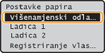 Nakon što registrirate standardne postavke ne prikazuje se zaslon za postavljanje papira ako je papir umetnut, a uvijek se koristi ista postavka. Ako umetnete drugi format ili vrstu papira bez promjene postavki papira, uređaj neće pravilno ispisivati. Da biste izbjegli taj problem, onemogućite standardnu postavku tako da u 3. koraku odaberete <Isključeno>, a zatim umetnete papir.
