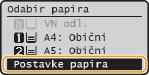 za odabir <Postavke papira> i pritisnite
