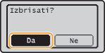 Odaberite <Izbriši> a zatim pritisnite