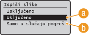 Odaberite <Uključeno> ili <Samo u slučaju pogreške>