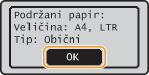 Provjerite je li u uređaj umetnut papir formata i vrste prikazan na zaslonu, a zatim pritisnite
