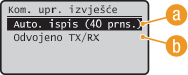 Odaberite <Uključeno> da biste izvješće ispisivali automatski nakon svakih 40 prijenosa ili <Isključeno> ako ne želite automatski ispis izvješća.