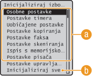 Za upute o tome kako vratiti postavke za <Mrežne postavke> i <Postavke upravljanja sustavom> pogledajte Inicijaliziranje postavki upravljanja sustavom.