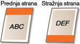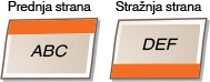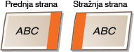 Tu postavku možete definirati u kombinaciji s postavkama <Pomak dužeg ruba (naprijed)>, <Pomak kraćeg ruba (nazad)> i <Pomak dužeg ruba (nazad)>. Definiranjem sve četiri postavke, primjerice, položaj ispisa pomiče se kao što je prikazano u ilustraciji ispod.