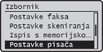 Na popisu se nalaze sve postavke vezane uz pisač s kratkim opisima. Zadane su postavke označene bodežom (